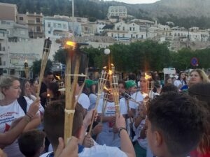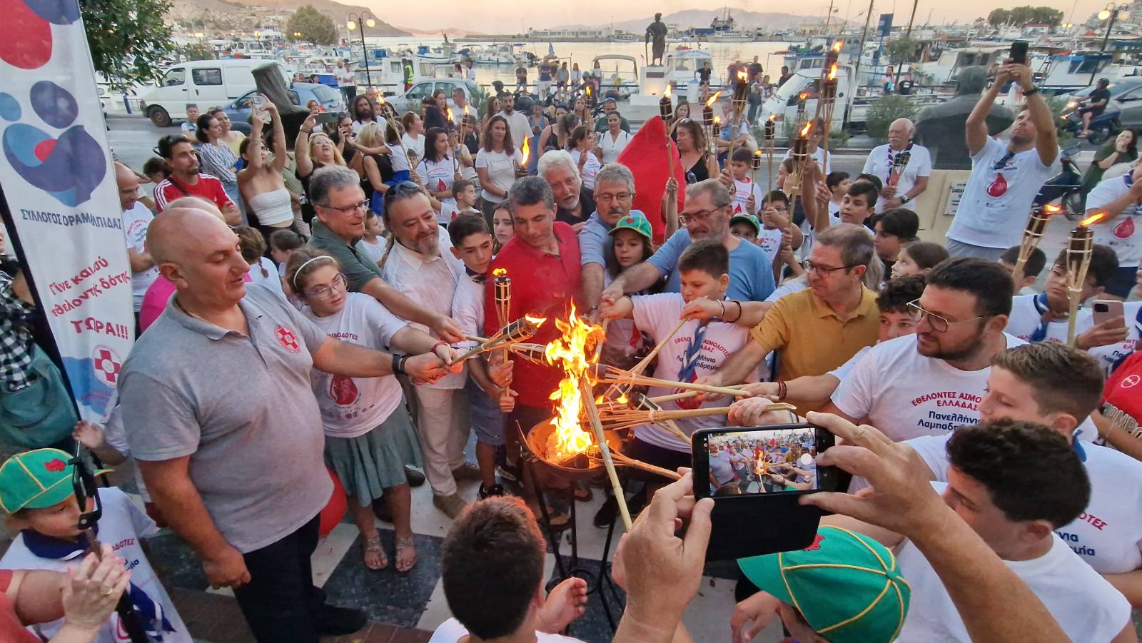 Η εκδήλωση, που διοργανώθηκε για ακόμη μία χρονιά από τον δραστήριο Σύλλογο Εθελοντών Αιμοδοτών και Δωρητών Οργάνων Σώματος Καλύμνου «Άγιος Παντελεήμων», ξεκίνησε μπροστά από το Λιμεναρχείο. Εκεί, μια λέμβος των προσκόπων μετέφερε τη φλόγα, η οποία παραδόθηκε στον εθελοντή αιμοδότη Γεώργιο Πίκο. Με τη σειρά του, εκείνος άναψε τις δάδες παιδιών και ενηλίκων που περίμεναν στην προκυμαία, δημιουργώντας μια εικόνα ενότητας και συγκίνησης.
