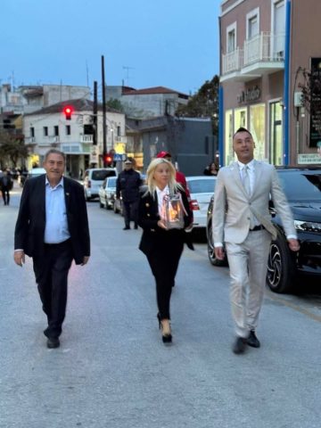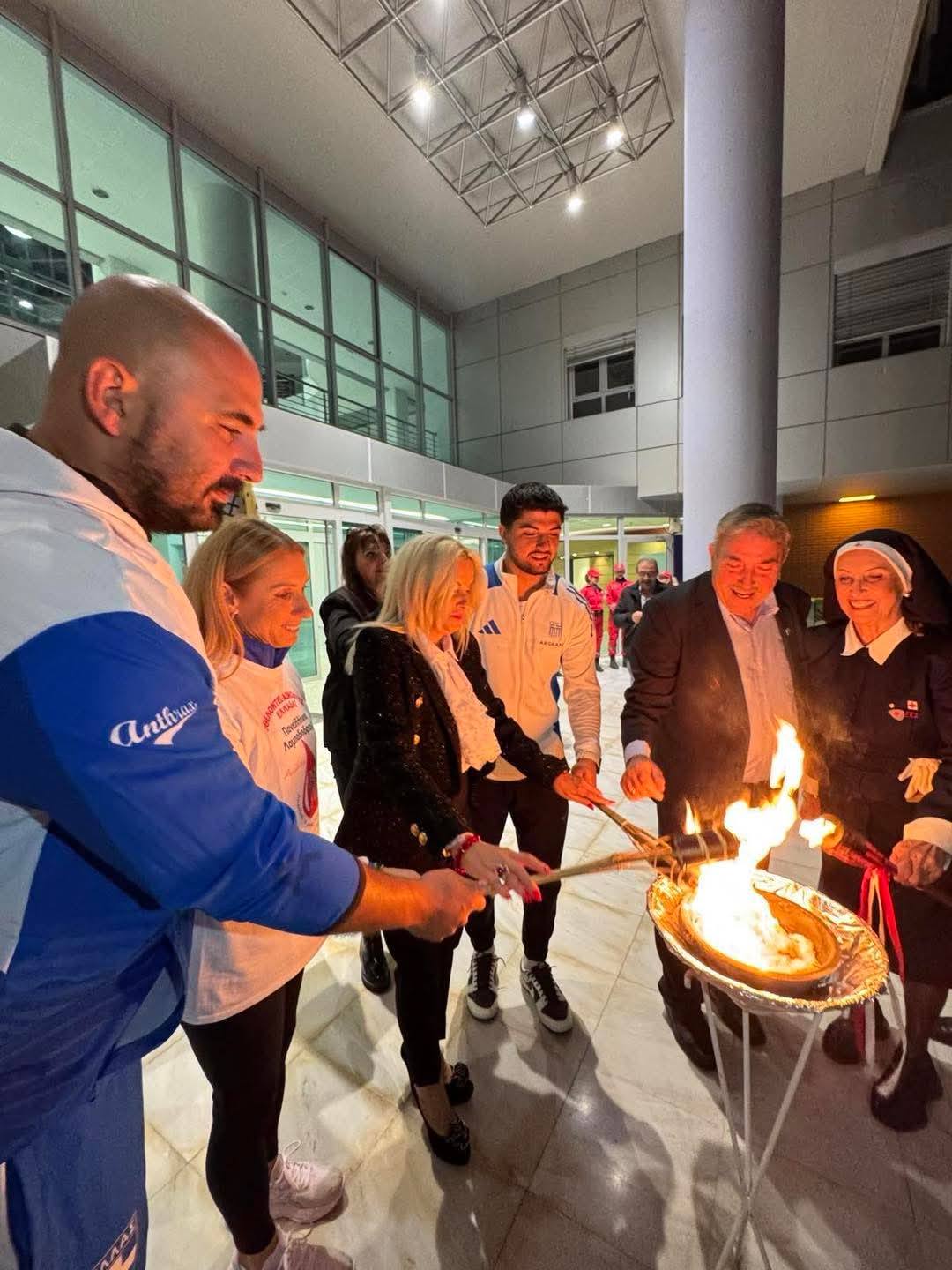 Τη Φλόγα παρέδωσαν ο Επίτιμος Πρόεδρος της ΠΟΣΕΑ κ. Χρήστος Πρωτόπαπας, η Ολυμπιονίκης και Πρέσβειρα Εθελοντικής Αιμοδοσίας της ΠΟΣΕΑ κα Αικατερίνη Θάνου, η Πρόεδρος του Ομίλου για την UNESCO Λάρισας Δρ. Θεοδώρα Κάλλα, ο Πρωταθλητής μεταμοσχευμένων αθλητών κ. Απόστολος Χαριτωνίδης και ο Χρυσός Παγκόσμιος Πρωταθλητής κ. Ιωάννης Κορακίδης.