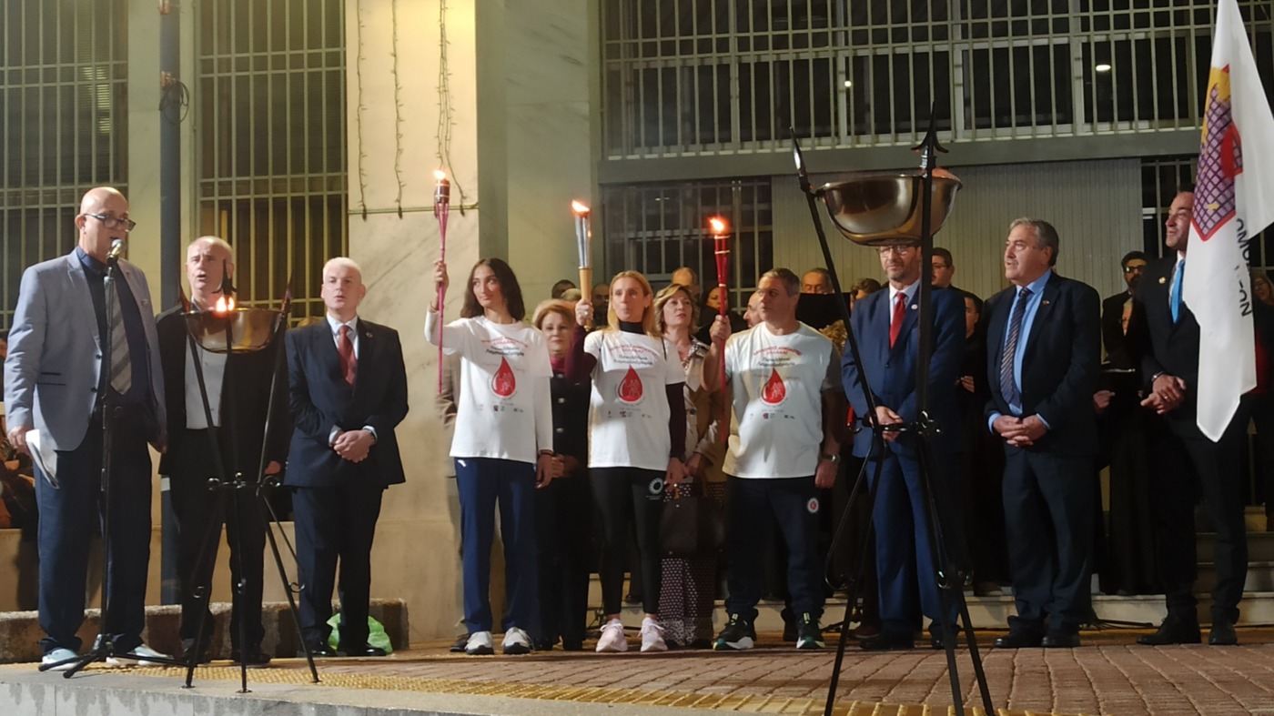 Τον βωμό στην κεντρική πλατεία της Ξάνθης άναψαν, η Ολυμπιονίκης Κατερίνα Θάνου, ο Πρωταθλητής και Ξανθιώτης Άγγελος Παυλακάκης και η νέα δύναμη στον στίβο της Ξάνθης, Στέλλα Ορφανίδη.